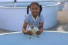 A young visitor holding a turtle from the petting pool - Cayman Turtle Farm
