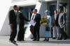 The new Governor of the Cayman Islands & his wife Mariko are greeted by the Speaker of the House, Ms. Edna Moyle.