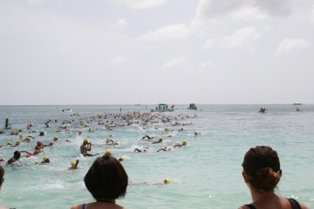 THE MASSIVE CROWD OF SWIMMERS SPREADS OUT |